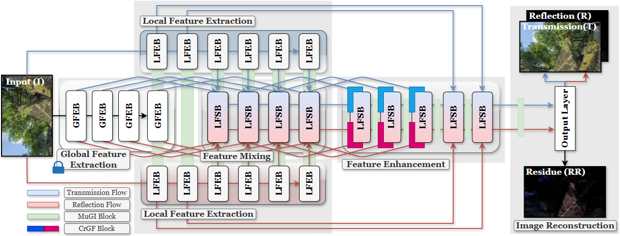 Single Image Reflection Separation (SIRS) disentangles mixed images into transmission and reflection layers. Existing methods suffer from transmission-reflection confusion under nonlinear mixing, particularly in deep decoder layers, due to implicit fusion mechanisms and inadequate multi-scale coordination.